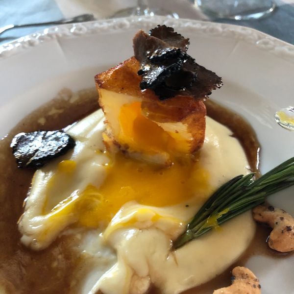 Die Sahne, den Kalbsfond, die Trüffelbutter, die Trüffeljus, den Trüffelbruch und die Madeirareduktion in einem Topf aufkochen lassen. Die frisch gekochten, ausgedämpften Kartoffeln in einen Mixer geben und mit der Trüffelsahne übergießen, dann kräftig durchmixen. Die Kartoffelmasse mit Salz abschmecken, in eine Espumaflasche füllen und diese mit 2 N2O‐Patronen bestücken. Die Espumaflasche bis zum Anrichten in ein 60°C heißes Wasserbad stellen.